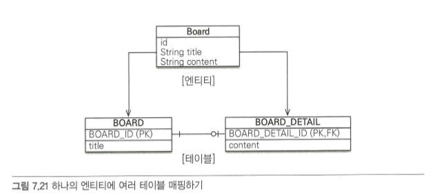 @SecondaryTable을 사용해서 두 테이블을 하나의 엔티티에 매핑하는 것 보다 테이블당 엔티티를 각각 만들어서 일대일 매핑 하는 것을 권장한다.
