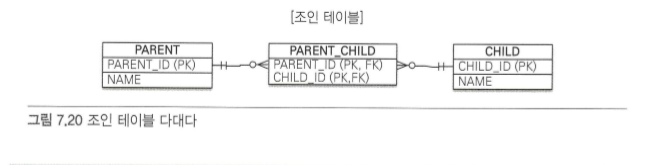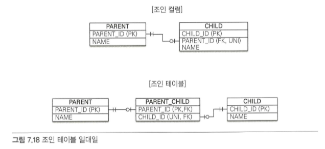 다(N)쪽에 유니크 제약조건을 걸어야 한다. 위 예시에선 CHILD가 다 쪽 이기에 CHILD_ID에 유니크.(하지만 PK이기에 이미 유니크)