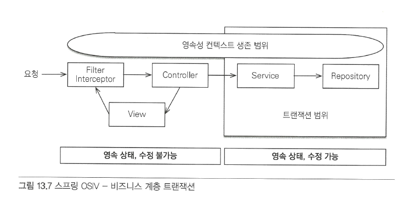 - 최근에는 비즈니스 계층에서만 트랜잭션을 유지하는 방식의 OSIV를 사용 (스프링 프레임워크가 제공)