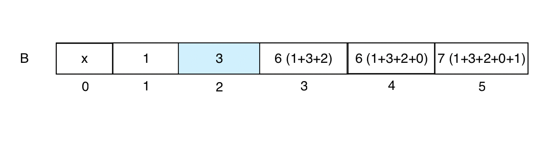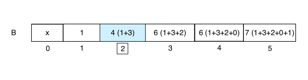 (ex, B[2] = 4는 2가 result의 [4]부터 시작해서 앞 1 을 만날 때 까지 2를 채우면 된다는 의미이다.)