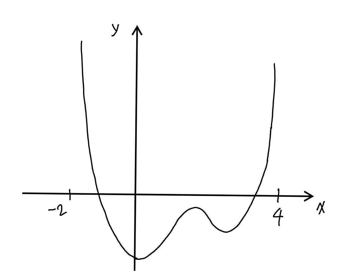 해당 방정식은 4차 방정식이기에, 몇가지 수를 넣어보고 대략적으로 다음과 같은 그림을 얻을 수 있었다.