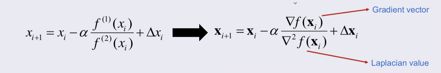 이는 Newton Method를 vector모양의 n차원 공간으로 확장하여 구할 수 있다.