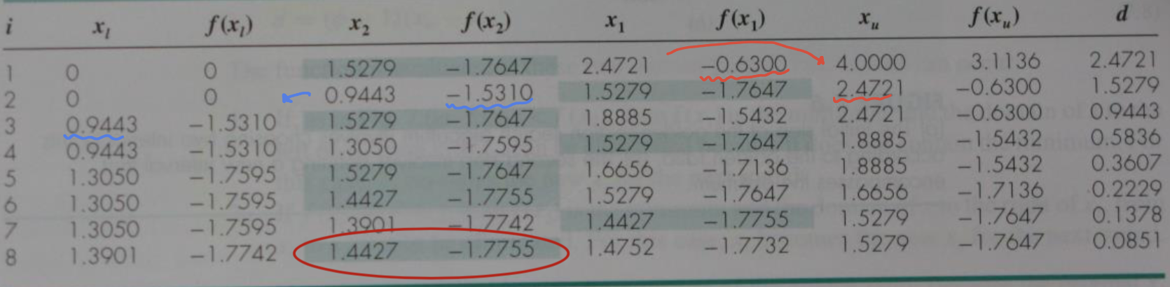 d가 xl에서 시작할지 xu에서 시작할지 모르기에 x1과 x2에서의 함수값을 비교하여 interval을 다시 지정해준다.