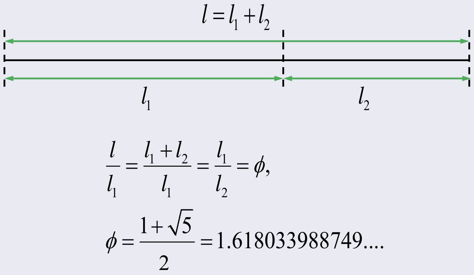 l1과 l2의 위치를 바꿔서 생긴 보조선은 l1을 또다시 황금비율로 나눈다.