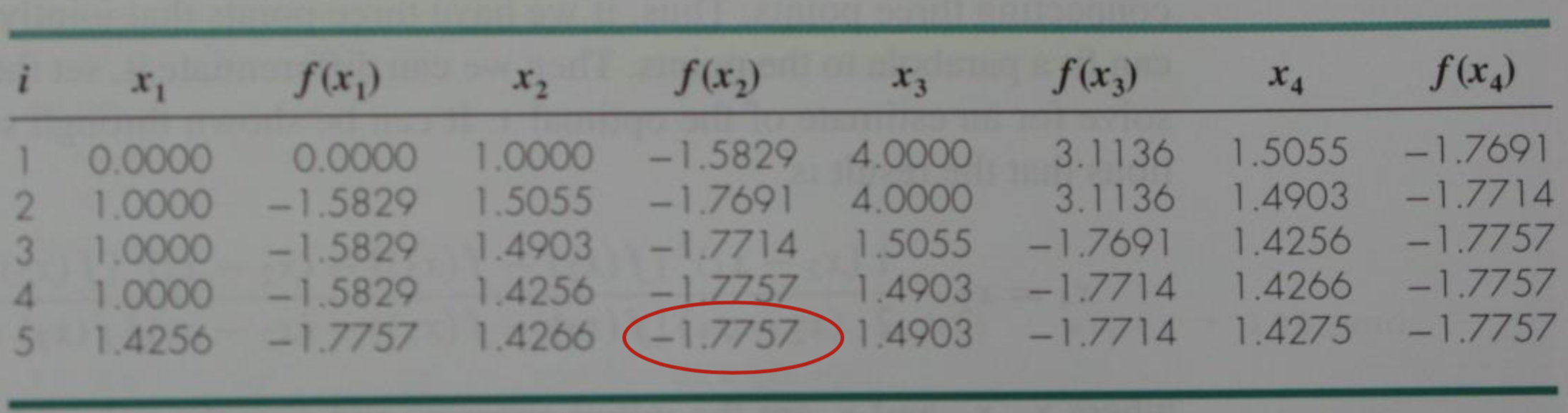 - f(x1) > f(x2)라면 x1이 새로운 upper bound (xu)가 되고 x2가 새로 만들어진 interval의 x1값이 된다. (x2값만 새로 구해주면 된다.)