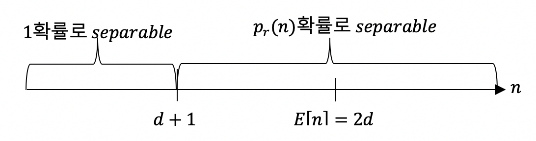 이때 E[n] = 2d가 되고, Median[n] = 2d가 된다. (E[n]의 의미는 처음 linearly separable이 깨지는 지점의 expectation)