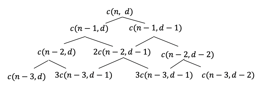 c(n,d)를 recursive하게 표현 가능하므로 이를 그림으로 그려보면 다음과 같다.