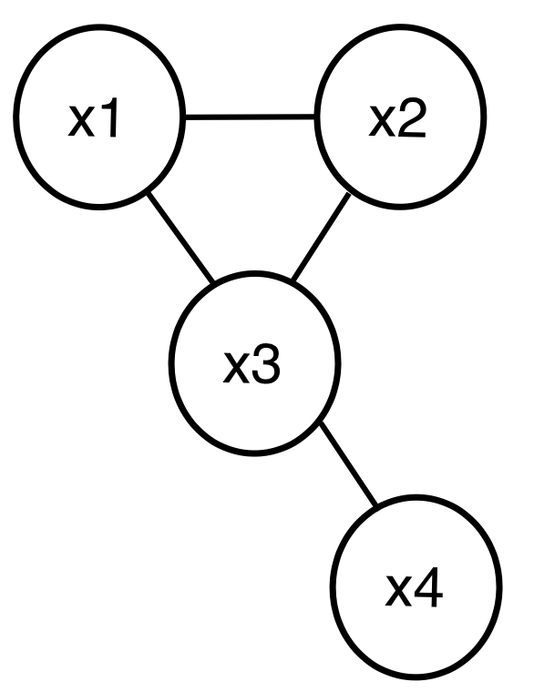 다음과 같은 {x1,x2,x3,x4} ∈ {0,1}3인 undirected graphical model이 있다고 할 때,