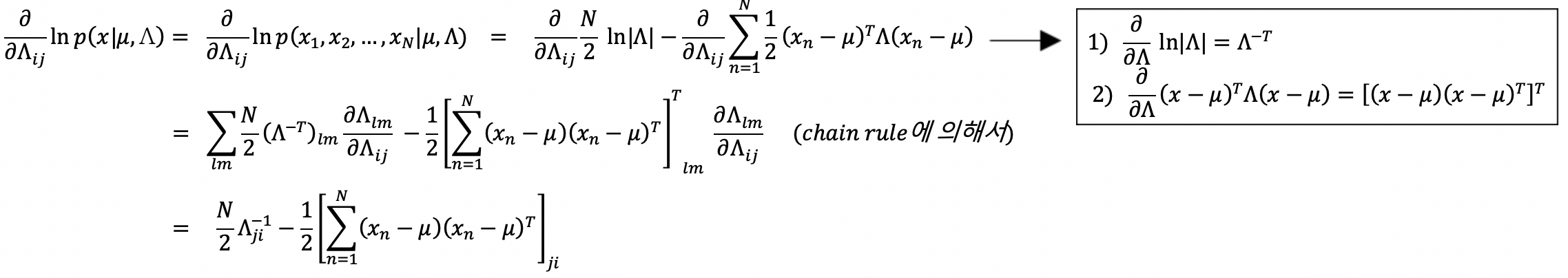 Λ = ∑-1로두고 식을 전개 후 maximum likelihood를 위해 미분해준다.