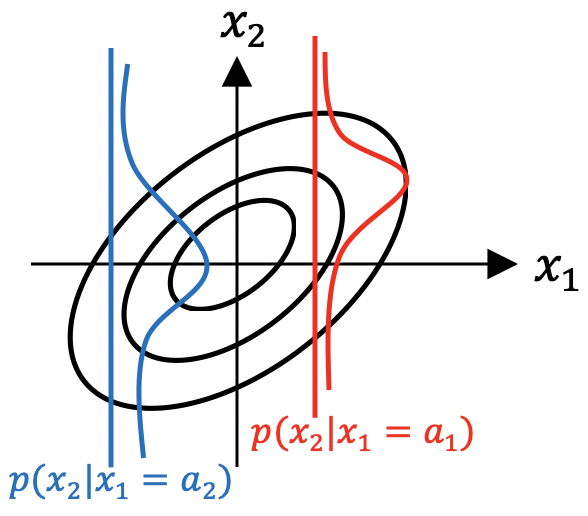 (knowable.tistory.com/51"conditional probability density function"에 p(x2|x1)을 얻어내는 과정을 정리해두었다.)