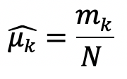 예를들어 주사위를 100번 던지고 1인 면이 30번 나왔다고 가정하자. maximum likelihood estimation을 사용하여 1인 면이 나올 확률을 구해보면 mk/N 이므로 30/100 = 3/10 의 확률로 1이 나온다는 얘기가 된다.
