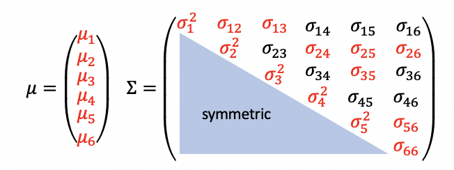 joint density function p(x|μ,Σ)가 가우시안이라 할 때