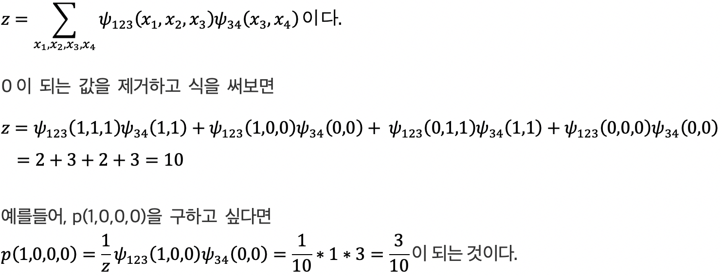 반대로, 이런 graphical model을 사용하지 않는다면 x1,x2,x3,x4 모든 경우에 대해 값을 구해줘야된다.