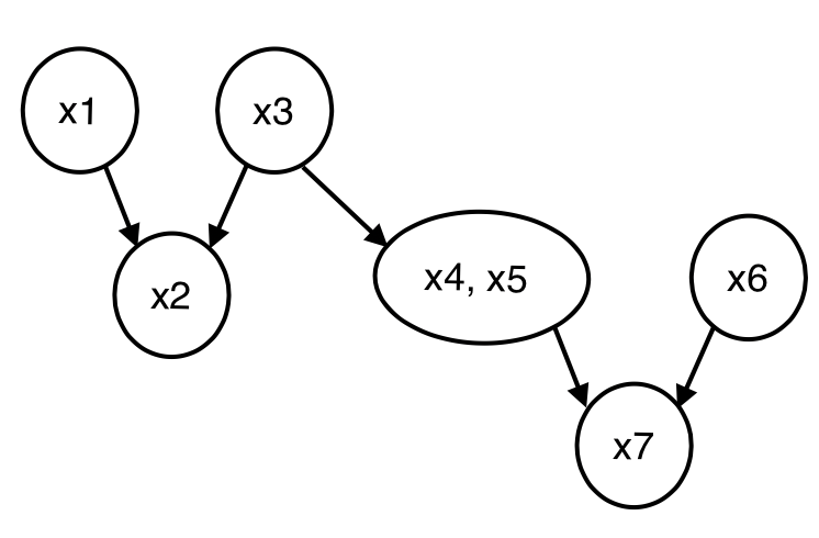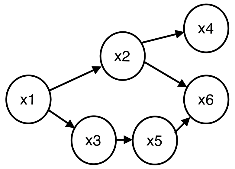 위 예시를 통해 특징을 살펴보면 x2,x4,x5가 주어져도 x1과 x3이 direct로 연결되어있기 때문에 독립이 아니다.
