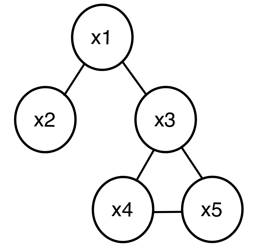 위 그림에선, (x1,x2),(x1,x3),(x3,x4,x5) 3개의 clique가 있고, 이중 maximal clique는 (x3,x4,x5)이다.
