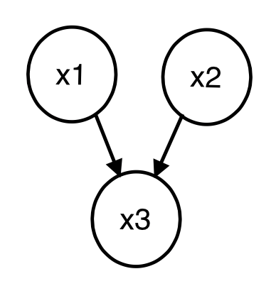 이때, p의 결과값들이 모두 같다는 것을 알 수 있다. 1번식과 2번식을 비교해보면 x2의 값이 변해도 p값이 변하지 않았으므로, x3이 특정 값으로 주어졌다면 x2와 x4가 서로 독립이라는 것을 알 수 있다.(x2값이 변해도 x4를 구하기 위한 확률이 변함이 없다)