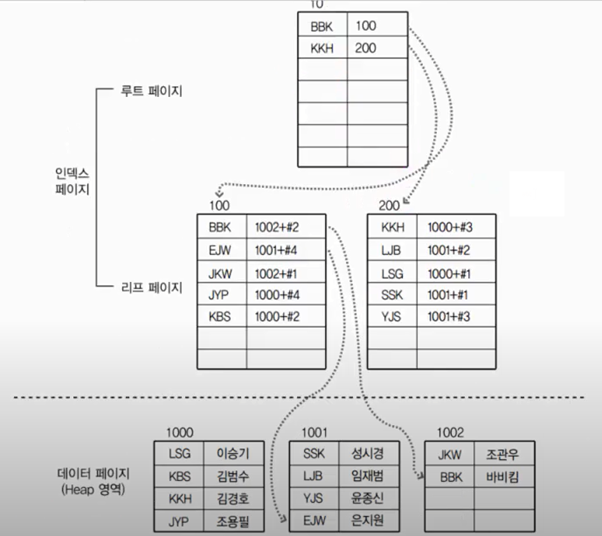 - 데이터 페이지를 건드리지 않고 별도의 장소에 인덱스 페이지를 생성한다.